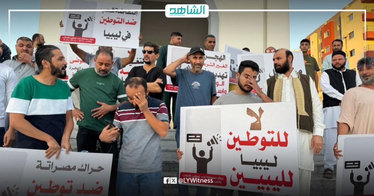 ورفع المشاركون في الوقفة شعارات تطالب السلطات باتخاذ إجراءات عاجلة لحماية الحدود ومحاسبة من يسهّلون دخول المهاجرين أو يمنحونهم تسهيلات للإقامة والعمل والتنقل داخل الأراضي الليبية.