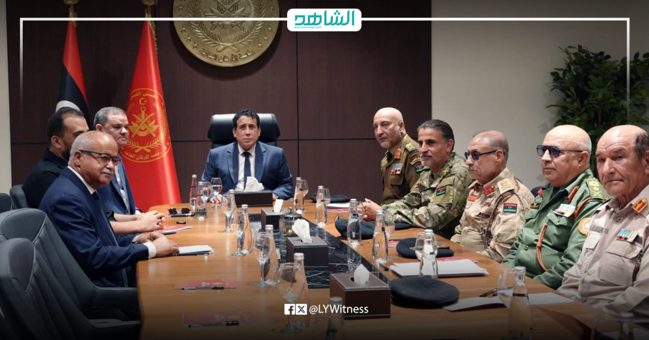 وقال المكتب الإعلامي للمنفي، في بيان له، إن الاجتماع الذي عقد في طرابس حضره أيضا وكيل وزارة الدفاع لشؤون المناطق العسكرية عبد السلام زوبي، ورئيس الأركان العامة الفريق أول ركن محمد الحداد، ومعاون رئيس الأركان، وآمر المنطقة العسكرية الوسطى، ورئيس أركان القوات البرية، ومسؤولون آخرون.