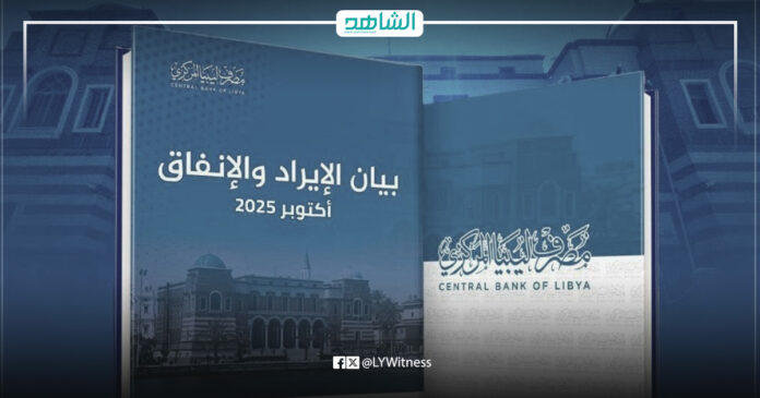 أصدر مصرف ليبيا المركزي، اليوم الثلاثاء، بيانه الشهري حول الإيراد والإنفاق العام، الذي يغطي الفترة من 1 يناير حتى 31 أكتوبر 2025، موضحًا فيه تفاصيل الإيرادات النفطية وغير النفطية، وأوجه الإنفاق خلال الأشهر العشرة الماضية.