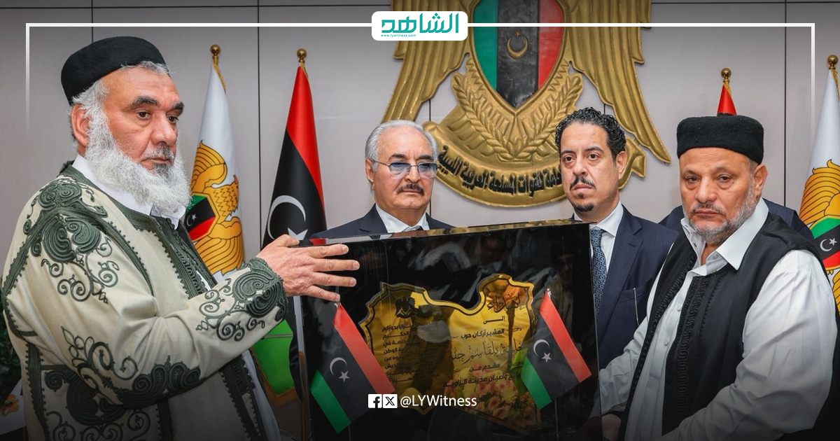 - المشير حفتر يلتقي مشايخ الزاوية.. ويؤكد: تلاحم الليبيين هو ضمانة العبور إلى بر الأمان