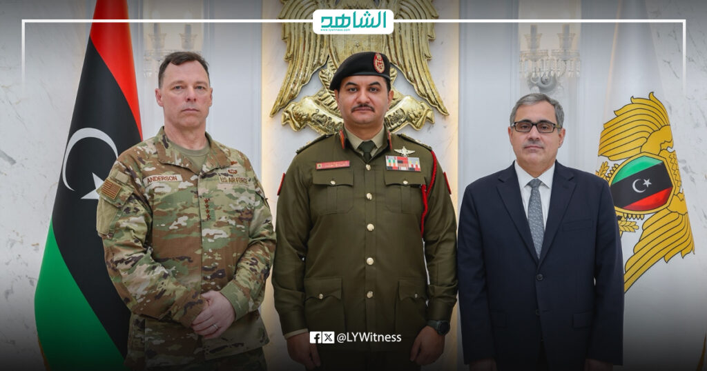 استقبل القائد العام للجيش الوطني الليبي، المشير خليفة حفتر، اليوم الثلاثاء، في مكتبه بمقر القيادة العامة ببنغازي، قائد القيادة العسكرية الأمريكية في أفريقيا “أفريكوم”، الفريق داغفين أندرسون، والقائم بأعمال السفارة الأمريكية لدى ليبيا، جيرمي برنت بحضور نائب القائد العام، الفريق صدام حفتر، ورئيس الأركان العامة، الفريق خالد حفتر.