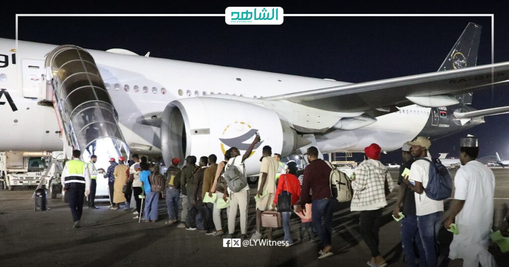 وقالت الوزارة في بيان أنه وفي إطار تنفيذ البرنامج الوطني لترحيل المهاجرين غير الشرعيين إلى بلدانهم الأصلية، وبتعليمات وإشراف مباشر من وزير الداخلية المكلّف لواء عماد الطرابلسي، تم ترحيل مجموعة من المهاجرين من جنسية نيجيريا عبر منفذ مطار معيتيقة الدولي.