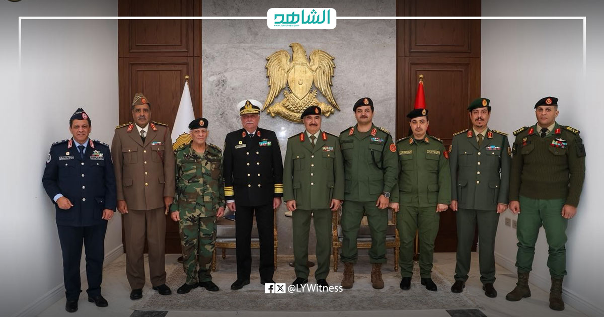 عقد القائد العام للجيش الوطني الليبي، المشير خليفة حفتر، اليوم الثلاثاء، اجتماعًا مع رئيس الأركان، الفريق خالد حفتر، ورؤساء الأركان العامة، الفريق بحار شعيب الصابر، واللواء عبد السلام الحاسي، واللواء عادل بوشاح، واللواء أحمد المسماري، واللواء صفوان بوطيغان، بمكتبه في مقر القيادة العامة.