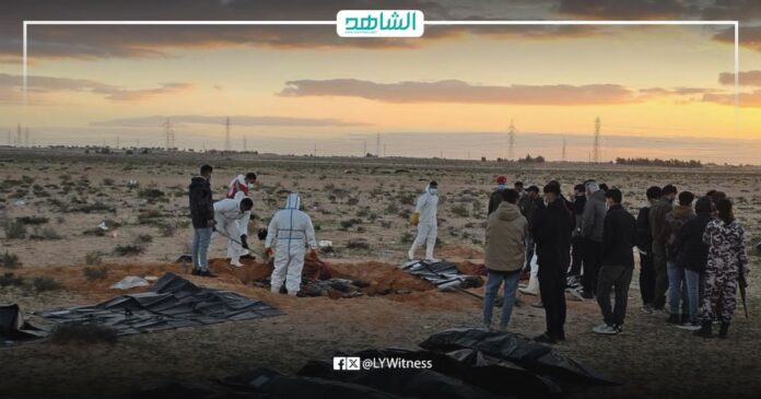باشر فريق وحدة إدارة الجثامين بقسم الحماية والهجرة في جمعية الهلال الأحمر الليبي – فرع أجدابيا، يوم السبت، عملية انتشال 21 جثماناً يُرجّح أنها تعود لمهاجرين، وذلك استناداً إلى بلاغ ورد من النيابة العامة، وبالتنسيق مع جهاز المباحث الجنائية بأجدابيا، وجهاز الأمن الداخلي، واللواء “166”.