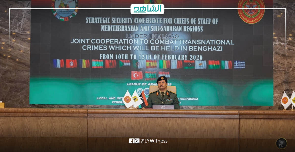 افتتح رئيس الأركان العامة للقوات المسلحة الليبية، الفريق أول ركن خالد حفتر، اليوم في بنغازي، أعمال المؤتمر الأمني الاستراتيجي الأول لرؤساء أركان دول حوض المتوسط وجنوب الصحراء، المنعقد برعاية رئاسة الأركان العامة تحت شعار “تعاون مشترك لمكافحة الجرائم العابرة للحدود”، خلال الفترة من 10 إلى 12 فبراير 2026.
