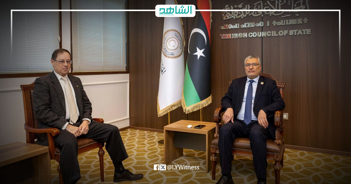 استقبل رئيس المجلس الأعلى للدولة محمد تكالة، اليوم الخميس، بمقر المجلس في العاصمة طرابلس، سفير روسيا الاتحادية لدى ليبيا حيدر أغانين.