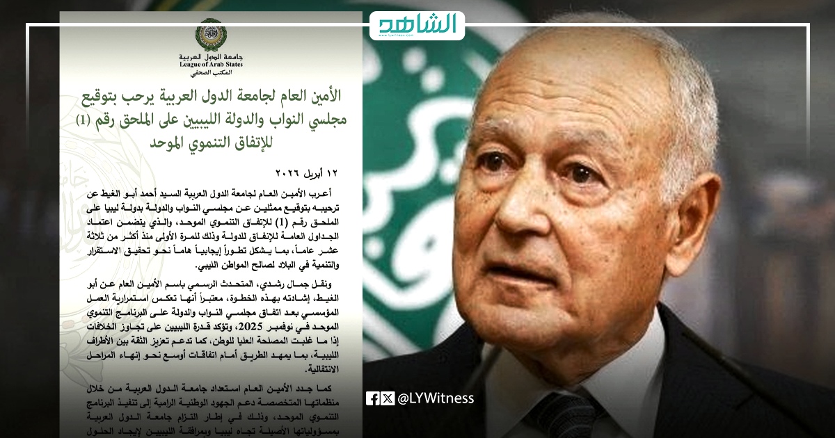 واعتبر أبو الغيط، أن هذه الحطوة تعكس استمرارية العمل المؤسسي بعد اتفاق مجلسي النواب والدولة على البرنامج التنموي الموحد في نوفمبر 2025، وتؤكد قدرة الليبيين على تجاوز الخلافات إذا ما غلبت المصلحة العليا للوطن، كما تدعم تعزيز الثقة بين الأطراف الليبية، بما يمهد الطريق أمام اتفاقات أوسع نحو إنهاء المراحل الانتقالية.