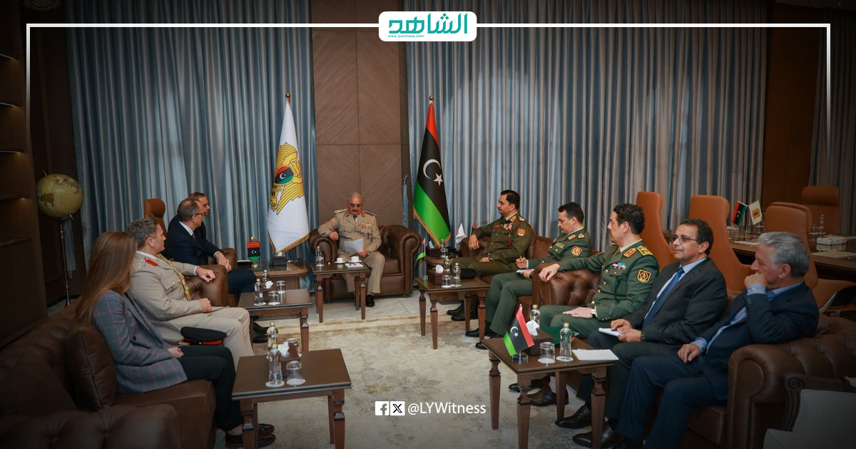 استقبل القائد العام للجيش الوطني الليبي المشير خليفة حفتر، اليوم الاثنين، بمقر القيادة العامة في بنغازي، السفير البريطاني لدى ليبيا مارتن رينولدز، والملحق العسكري مات كيتيرر، والوفد المرافق لهما.