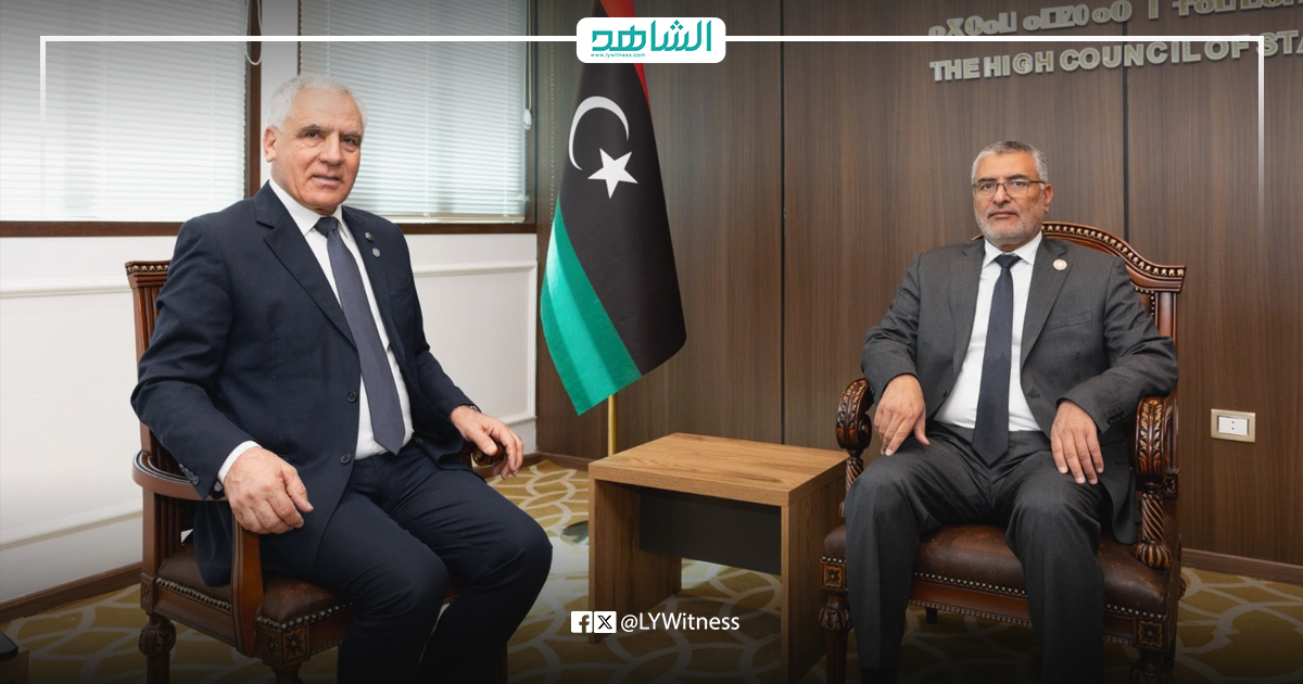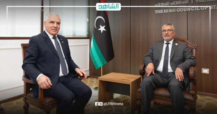 استقبل رئيس المجلس الأعلى للدولة الليبي محمد تكالة، اليوم الأربعاء، رئيس مجلس إدارة الاتحاد العام لغرف التجارة والصناعة والزراعة محمد الرعيض، بمقر المجلس بطرابلس.