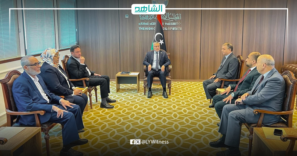 ويأتي اللقاء، في إطار متابعة إنجاز الملف للمضي في خارطة الطريق للحل السياسي في ليبيا، وذلك وفق بيان نشرته صفحة مجلس الدولة على فيسبوك.